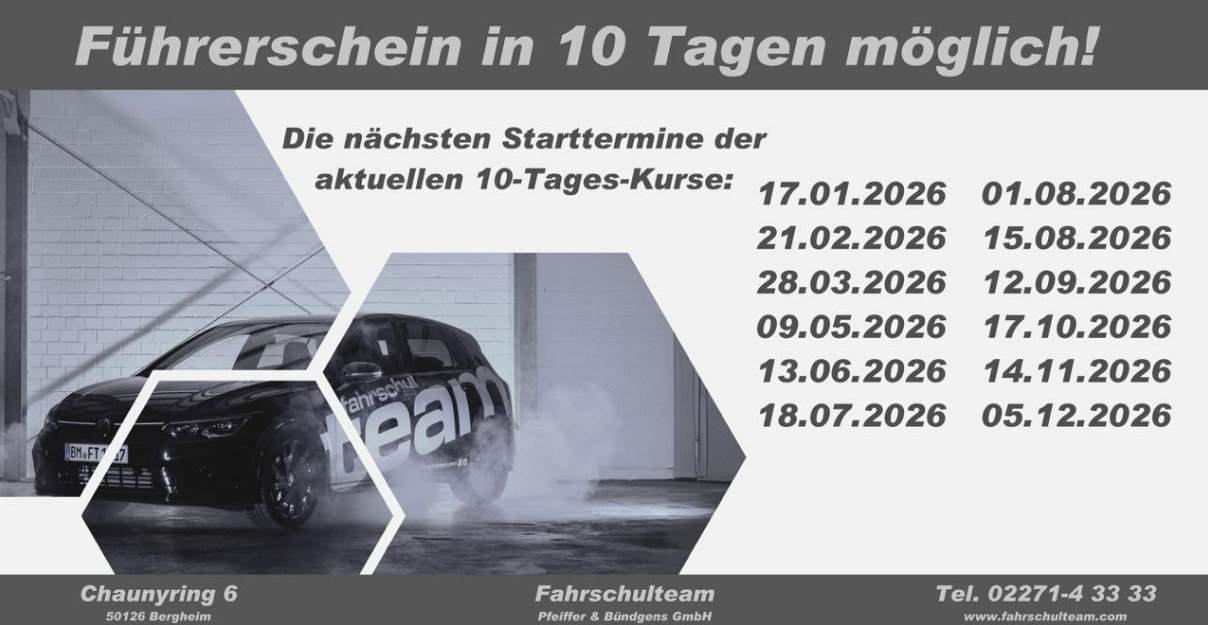 in 10 Tagen zum Führerschein Schreib uns eine Nachricht Name E-Mail-Adresse Nachricht... 8 + 12 = Senden